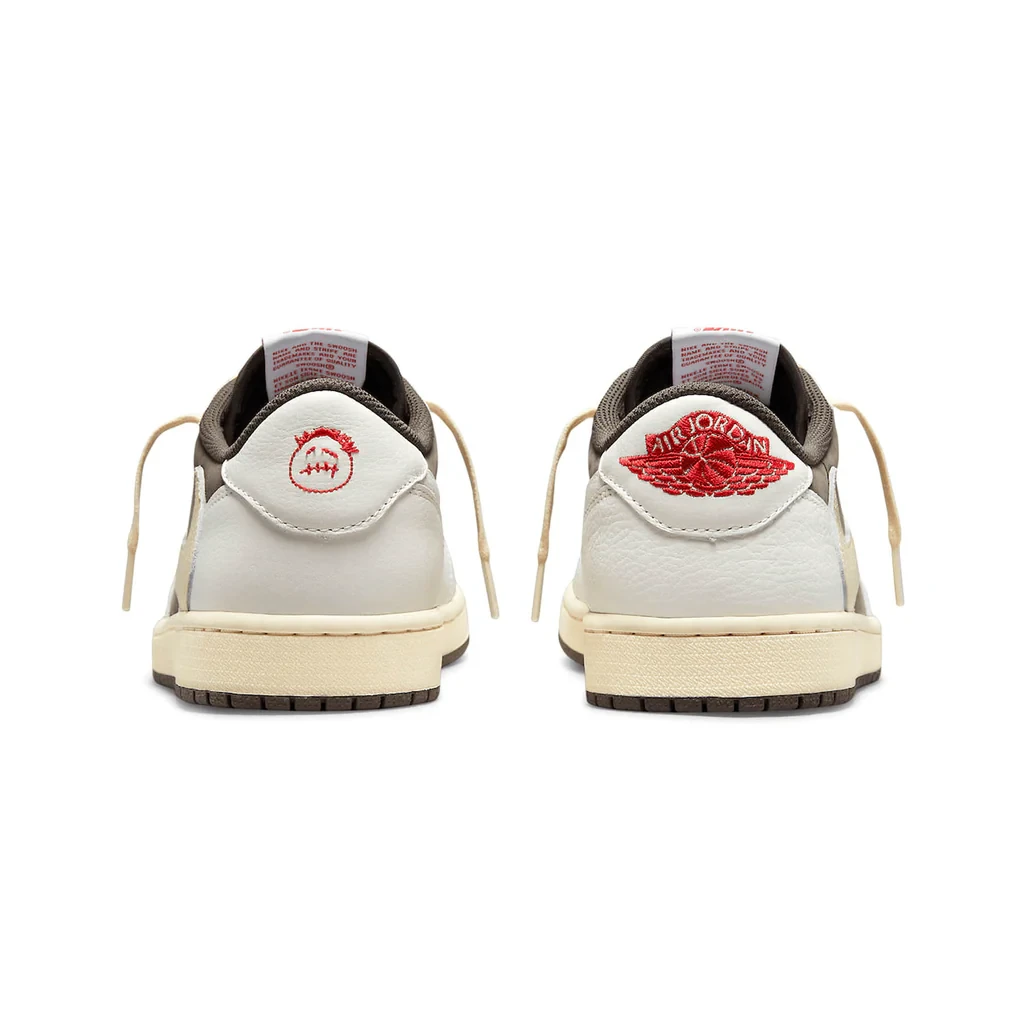 The Travis Scott x Air Jordan 1 Low OG ‘Reverse Mocha’ delivers a twist on the original ‘Mocha’ AJ1 Low from 2019. The upper combines a brown suede base with ivory leather overlays and the Houston rapper’s signature reverse Swoosh on the lateral side, featuring oversized dimensions and a neutral cream finish. Contrasting scarlet accents distinguish a pair of woven Nike Air tongue tags, as well as mismatched Cactus Jack and retro Wings logos embroidered on each heel tab. A vintage off-white rubber midsole is bolstered with encapsulated Nike Air cushioning in the heel and a brown rubber outsole underfoot.