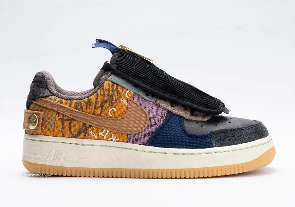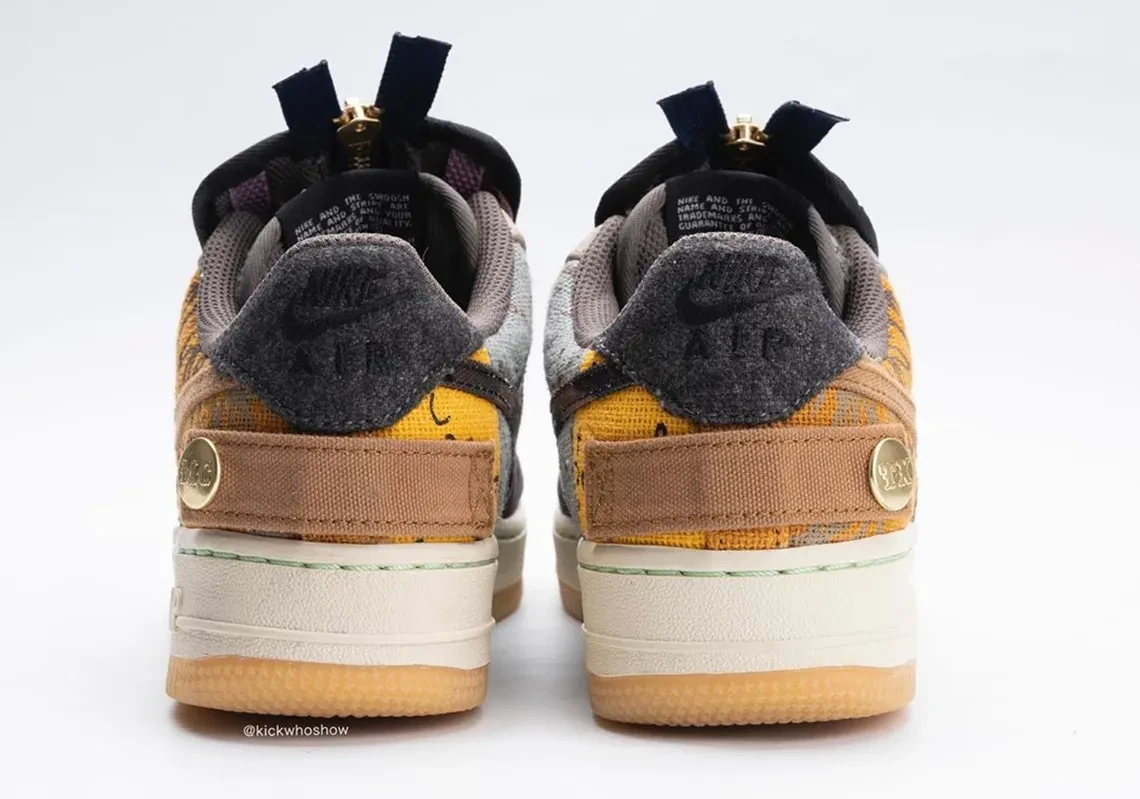 This Travis AF-1 features a patchwork upper comprised of camouflage, corduroy, duck canvas, flannel, leather, suede and wool. Unmistakable Cactus Jack insignias are placed throughout the silhouette. A sail midsole and gum rubber outsole completes the design. These sneakers released in November of 2019.
