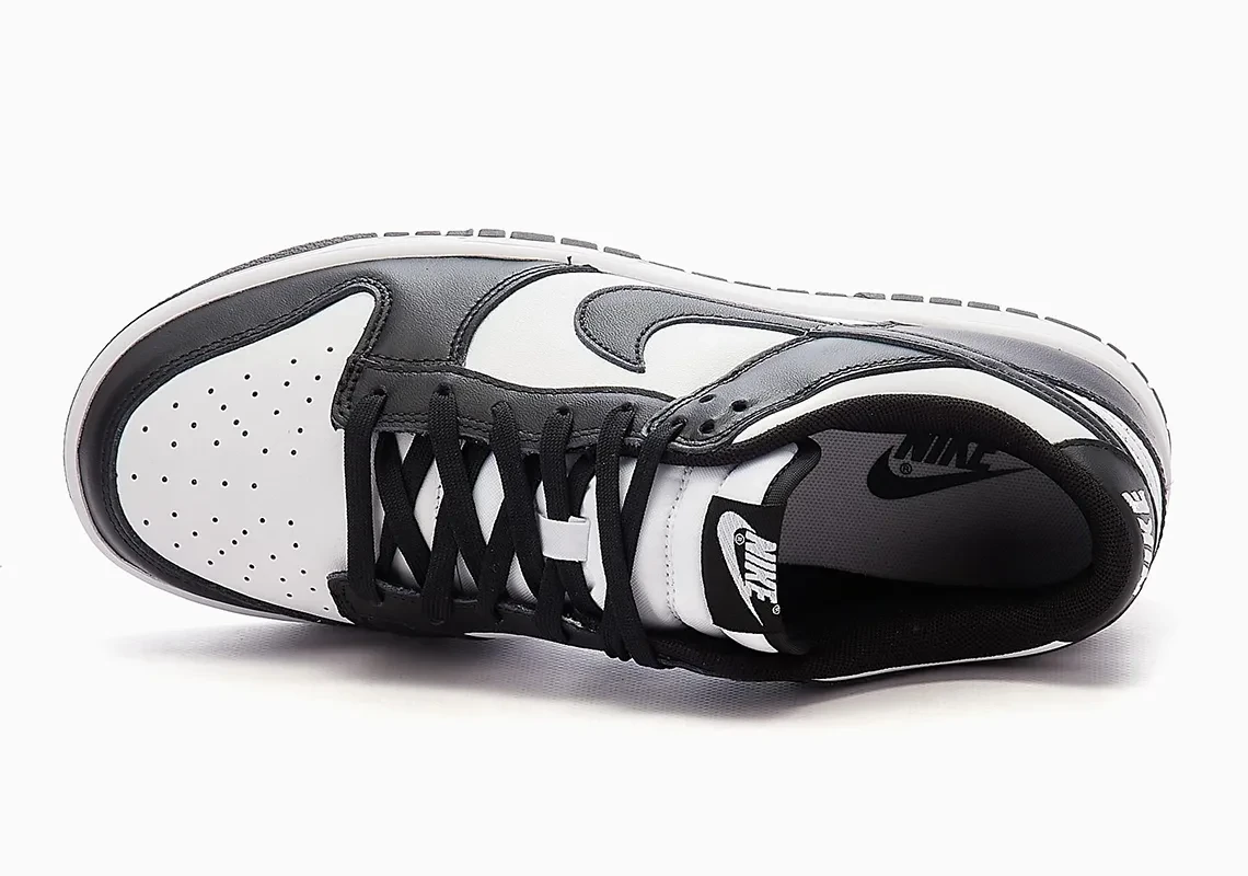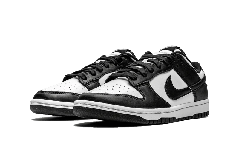 The upper Nike Dunk Low Retro White Black is constructed of white leather with black leather overlays and Swooshes. Classic Nike branding is featured on the nylon tongue, nodding to traditional Dunk design elements. A white midsole and black outsole complete the design.