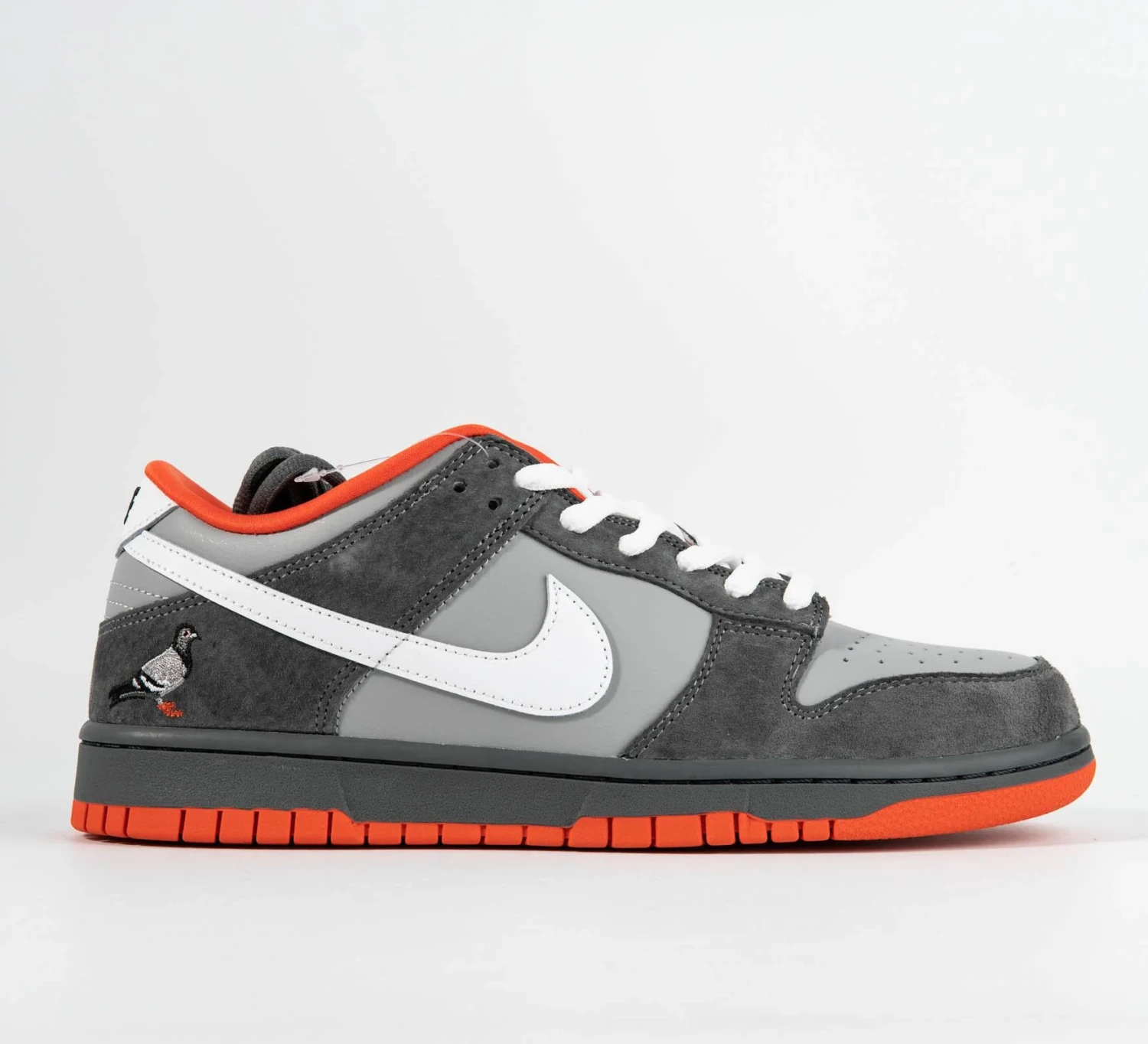 In the list of craziest sneaker releases, the Jeff Staple–designed Nike SB Dunk Low NYC Pigeon is near the top. When the Pigeon Dunks released back in 2005, word spread and lines formed outside of Reed Space, Jeff Staple’s Lower East Side shop. By the time release day rolled around, the crowd had grown to such a size that New York City police had to be called in to keep things in order and make sure those who purchased could get home safely. All the attention landed the Pigeon Dunk release on the cover of the New York Daily News paper the next day. With only 150 pairs produced, the Pigeon SB Dunk is one of the most popular Nike SB releases of all time and even without the exclusivity, the colorway is one of the best. Inspired by the most commonly-found bird in NYC, the Dunk Low is officially colored as Medium Grey/White-Dark Grey, but it’s the combination of grey on the upper, a white Swoosh, an orange pigeon foot–like outsole, and the stitched-in pigeon on the heel that make this colorway one that every sneaker enthusiast would like to get their hands on. Not only did the Nike SB Dunk Low NYC Pigeon help bring energy to Nike Skateboarding back in 2005, it started a long line of successful pigeon-inspired sneakers from NYC’s Jeff Staple.