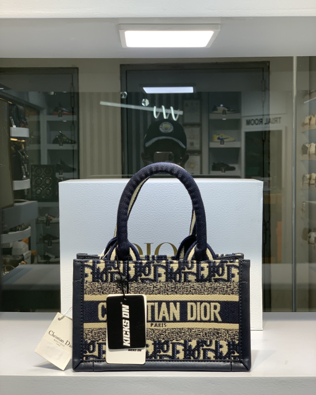 The Dior Book Tote is a House classic and original design by Maria Grazia Chiuri, Creative Director of Christian Dior. The style is fully embroidered with the House's hallmark blue Dior Oblique motif and showcases the Christian Dior Paris signature. Exemplifying House savoir-faire, the miniature style features an adjustable and removable strap that allows it to be carried by hand, worn over the shoulder or crossbody.