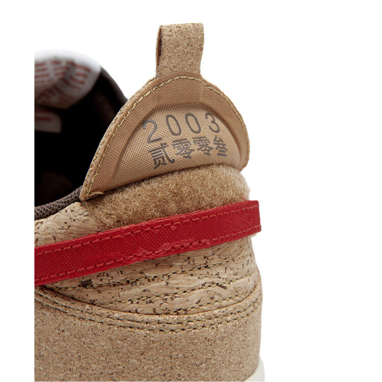 What we love most about this shoe are the hits of branding, some quite clever. Nike branding appears on the woven tongue patch while CLOT branding adorns the sock liner and medial collar. The red Nike side panel Swoosh is affixed to the shoe via Velcro. Beneath the heel tabs, one says 2003 and the other 2023, both in Arabic numerals as well as Chinese characters. The Nike Dunk Low SP CLOT Cork was released on June 23, 2023.
